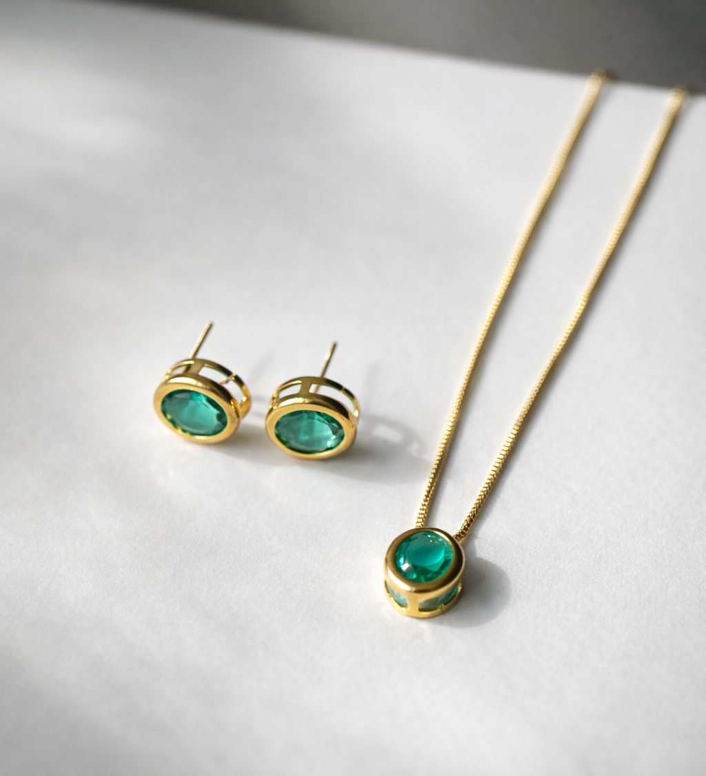 As peças recebem banho de ouro 18k ou ródio.