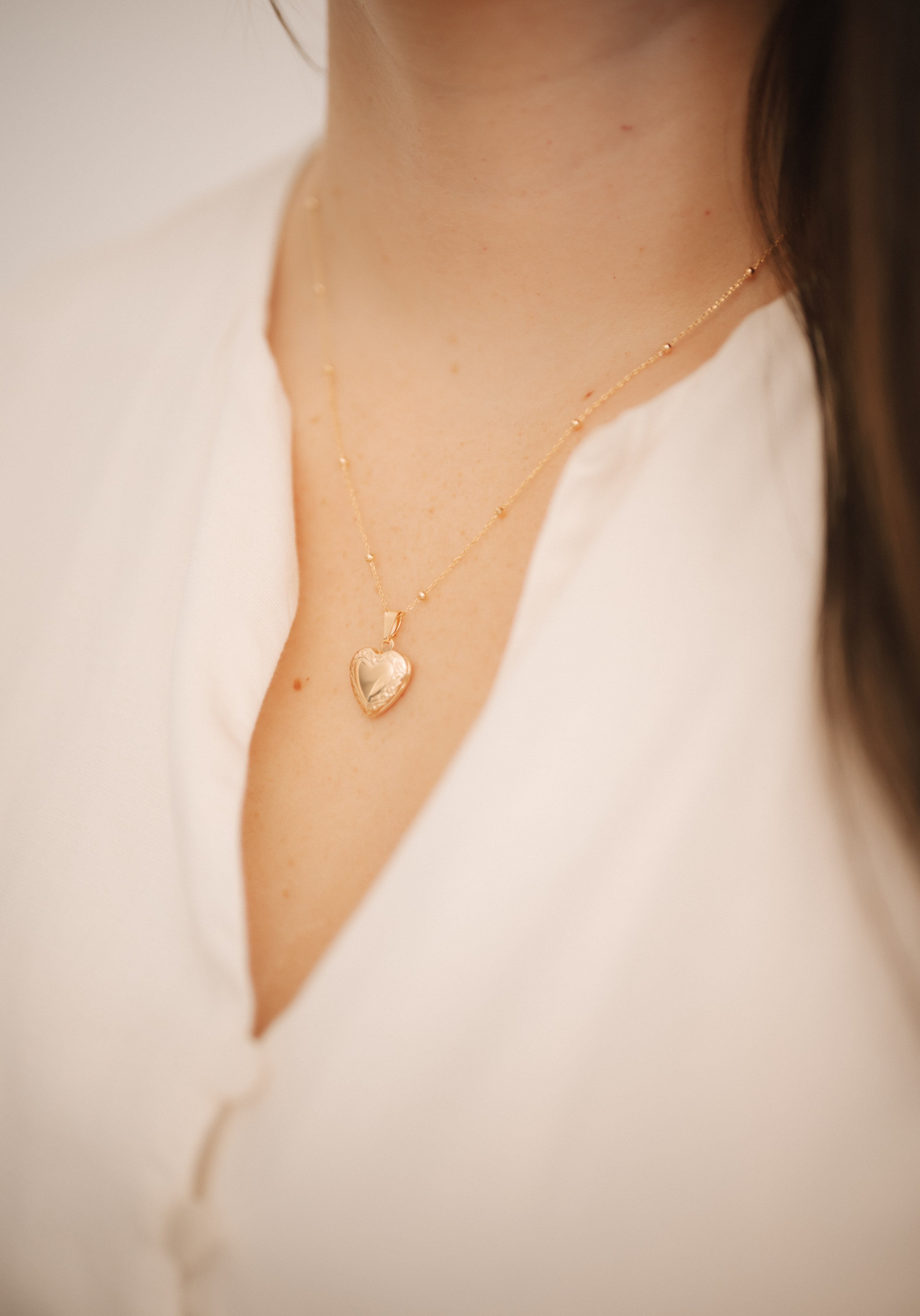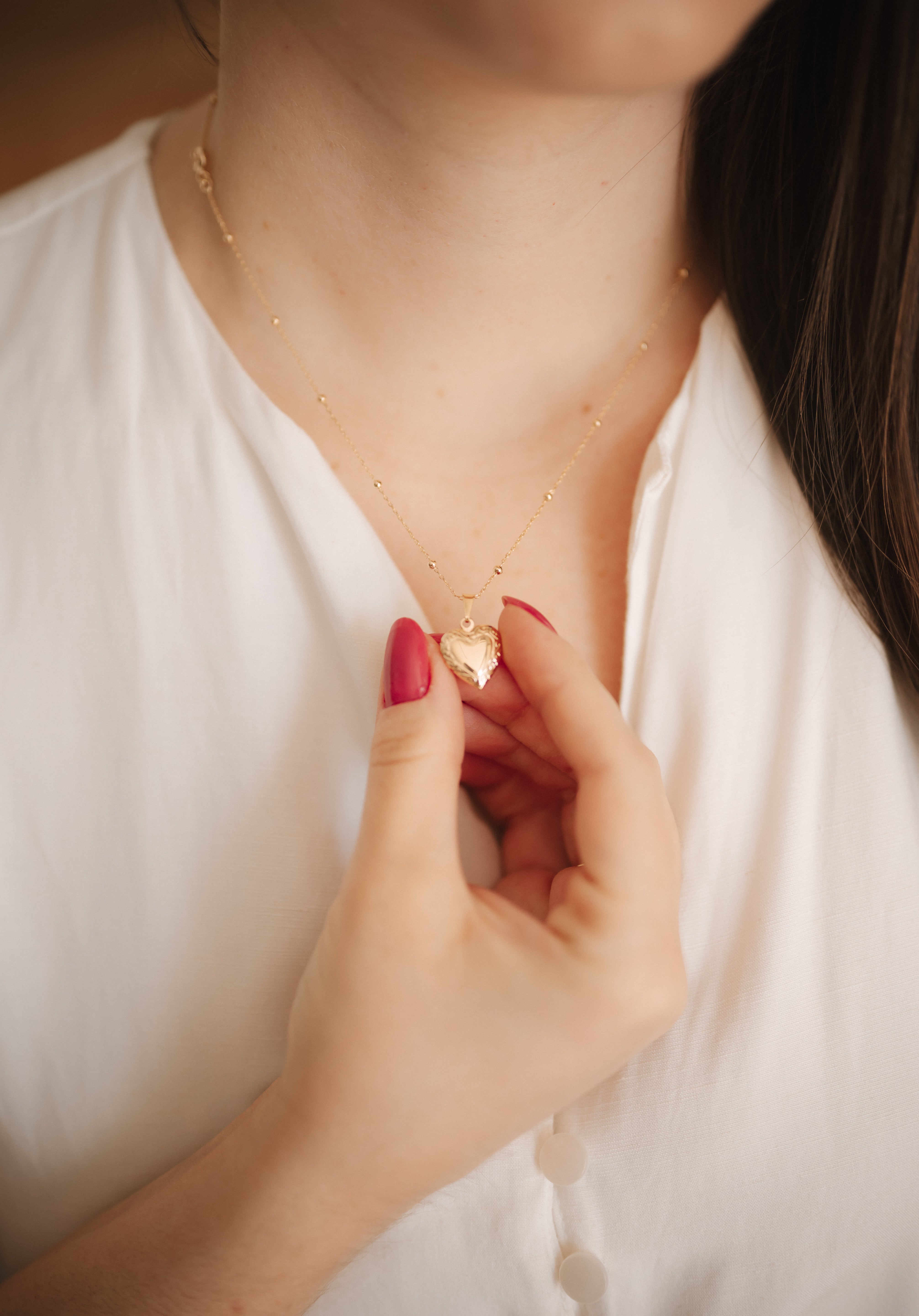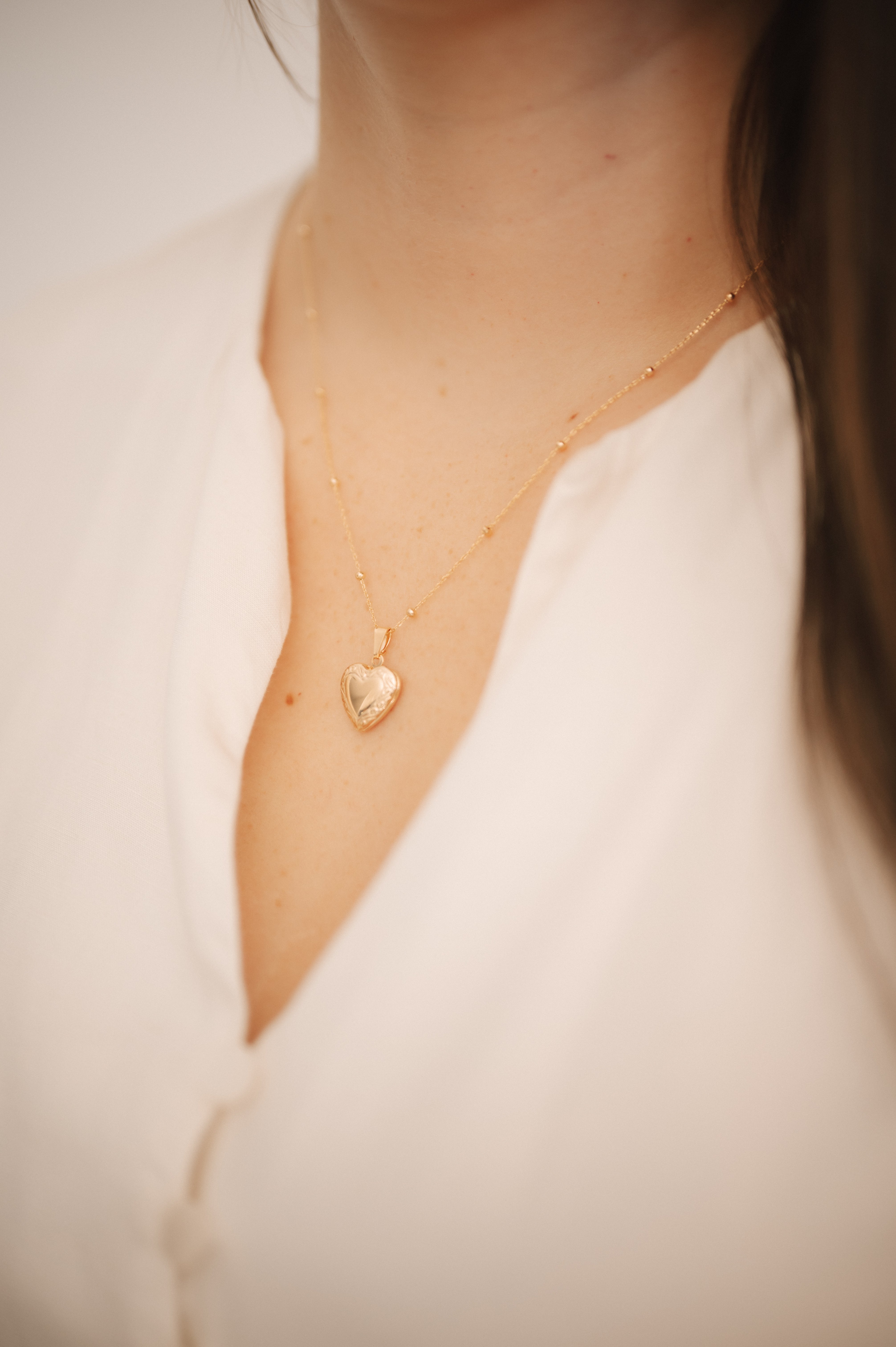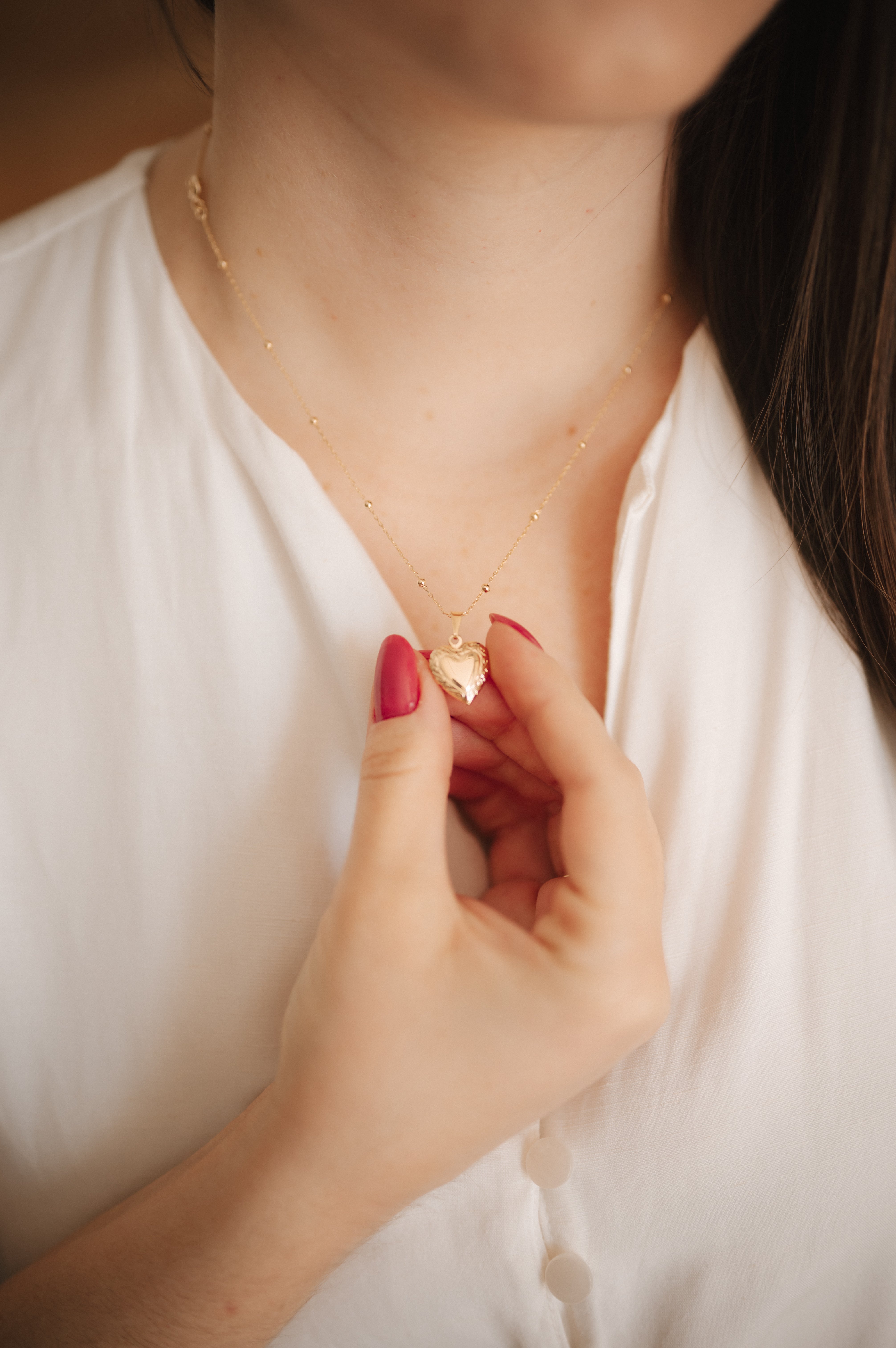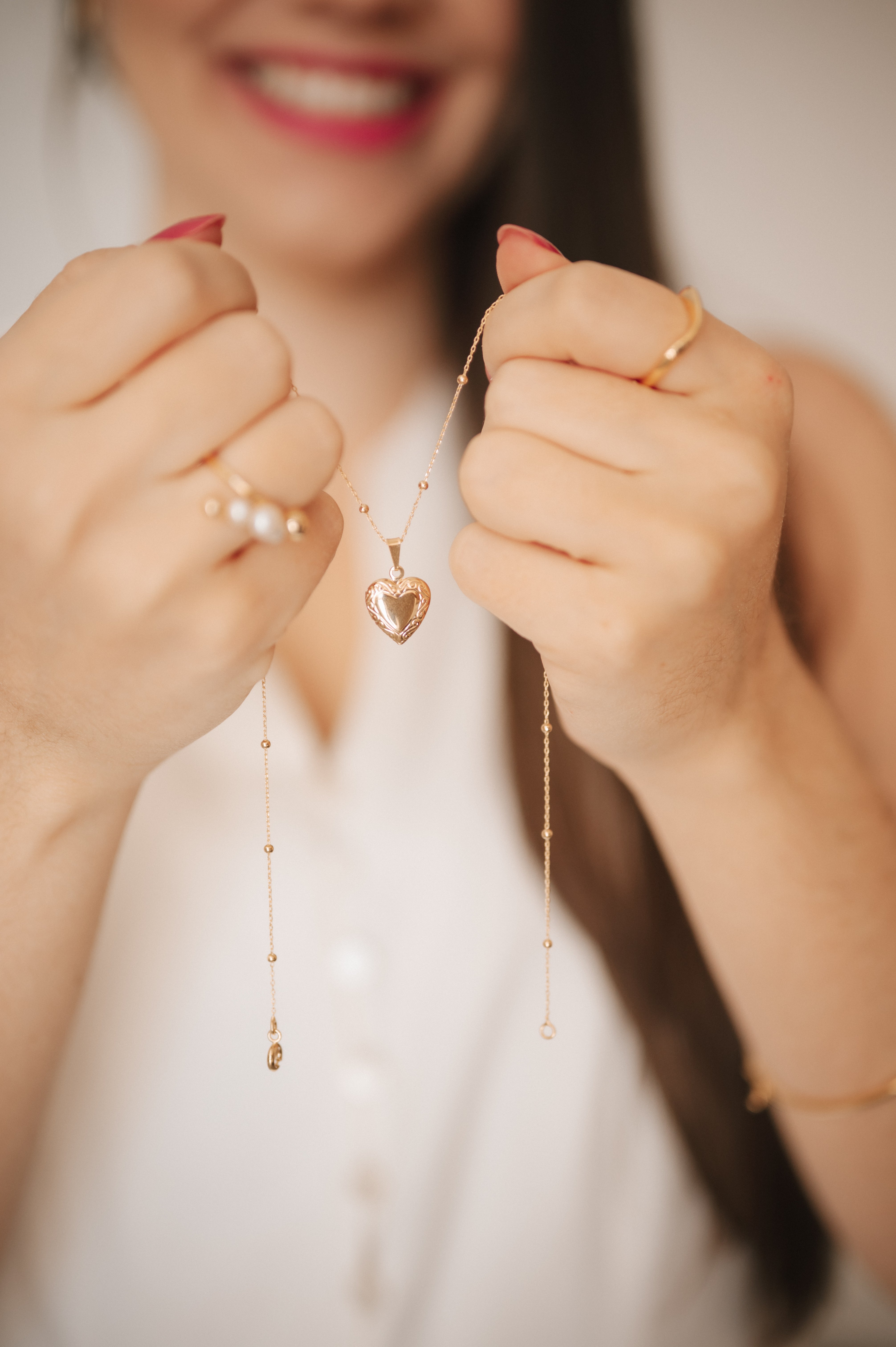 O Relicário Mini Eleonora é uma versão ainda mais delicada do nosso Relicário Eleonora. Composto por uma corrente em malha veneziana com pequenas esferas e um lindo pingente em formato de coração com detalhes em baixo relevo, o colar Relicário Mini Eleonora é mais do que apenas um acessório, ele tem o poder de contar história através da foto que pode ser guardada em seu interior. Para além do valor sentimental que pode ter, é uma peça delicada e charmosa com um toque vintage.