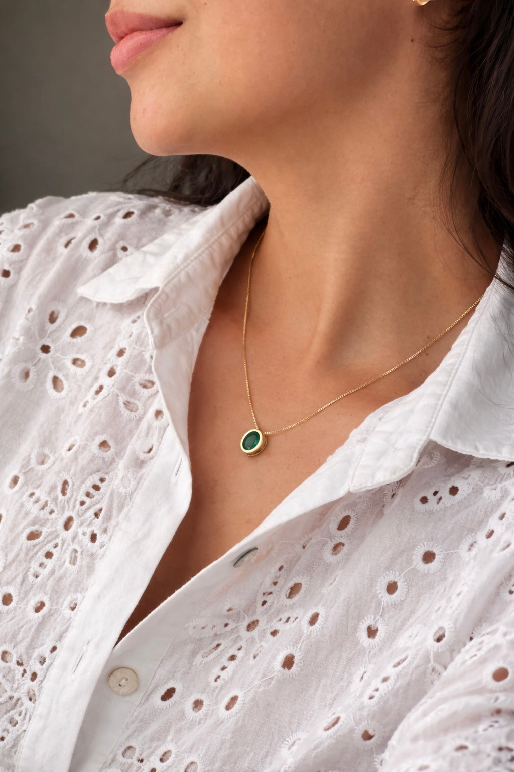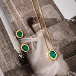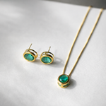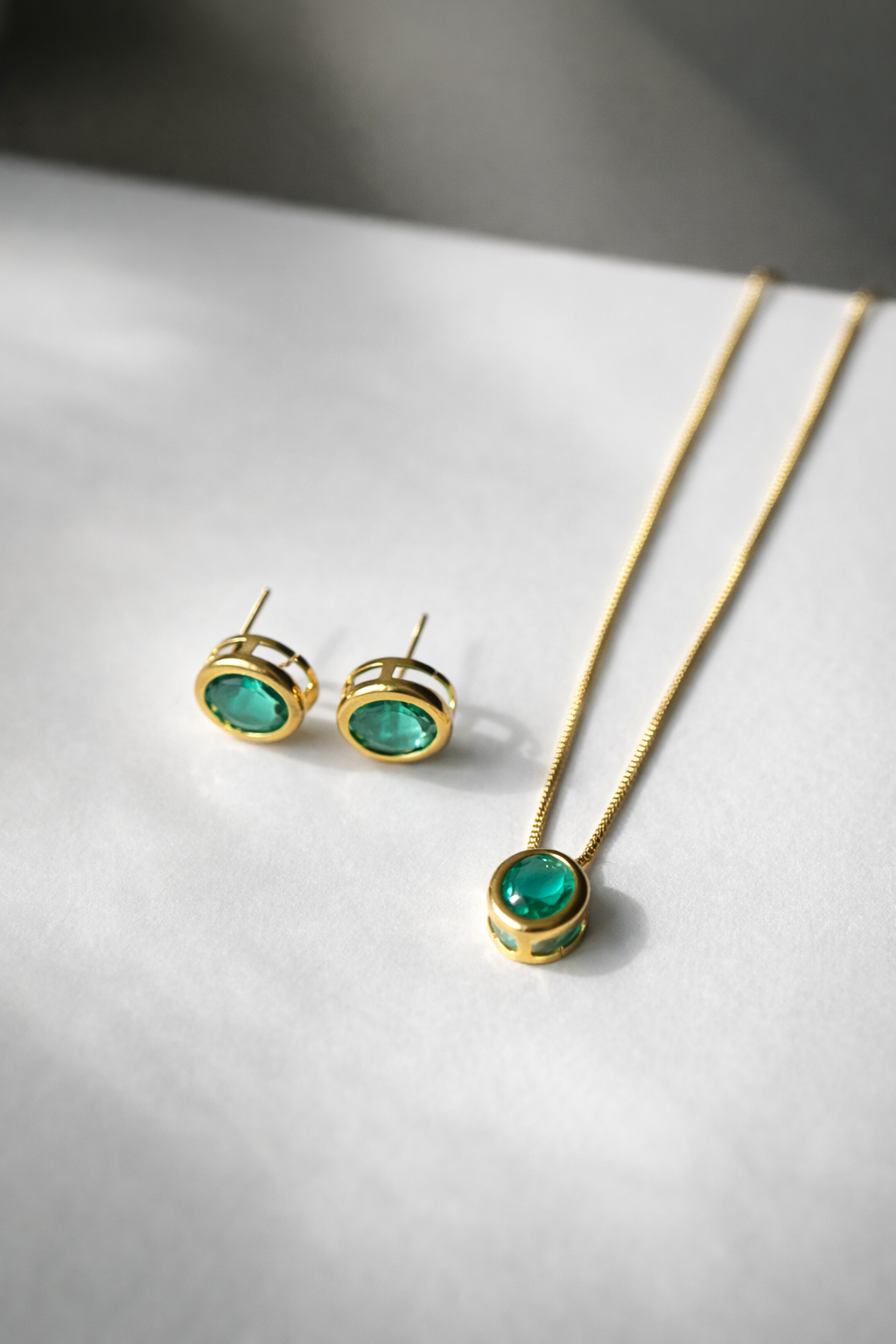 Elegante e delicado, é um conjunto de brinco e colar com pingente de cristal oval turmalina, pode compor desde looks casuais, até produções mais elaboradas.
